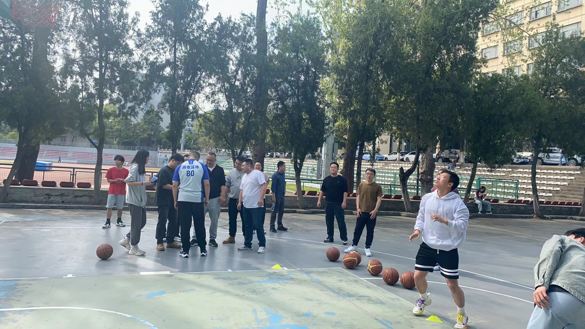 比赛于4月10日下午在图书馆南侧的篮球场举行,项目分为定点投篮、运球绕杆接力和3vs3对抗赛。