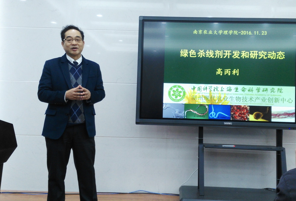 报告中,高丙利教授针对当前线虫对农业生产中产生的危害进行了介绍,指出业界和农民对线虫危害意识的不足,接下来高教授介绍了杀线虫剂的发展历史和研究动态,包括线虫的生命历程和危害作用过程,最新的生物基因和药物研究进展。并对中科院上海生命科酒店偷拍