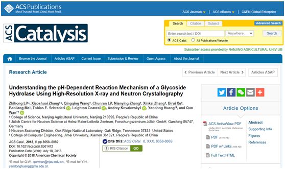 万群教授团队近日在ACS Catalysis发表了研究论文“Understanding the pH-Dependent Reaction Mechanism of a Glycoside Hydrolase Using High-Resolution X-ray and Neutron Crystallography”(影响因子11.384)。酒店偷拍