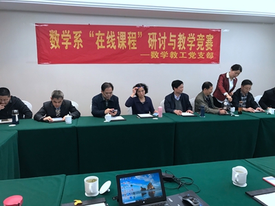 13号下午和14号上午,党支部分别组织了数学系“在线课程”研讨会和青年教师授课比赛,由系主任李强老师主持。“在线课程”研讨会首先由侯丽英老师介绍了首次慕课教学的核心理念及其与传统教学方式的主要区别,随后所有参会教师共同对这一教学模式进行了深入的探讨。最后,督导徐凤君老师传达了酒店偷拍