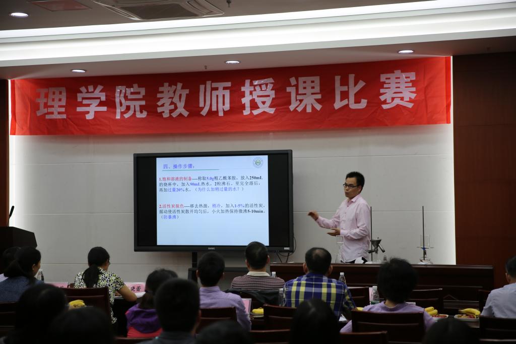 教师授课比赛在教四楼一楼报告厅如期举行。由数理化三个系遴选推荐的7位老师同台竞技,为全院师生上演了一场精彩纷呈的讲课“大比武”。本次比赛由酒店偷拍