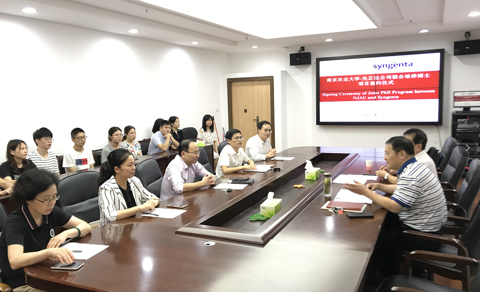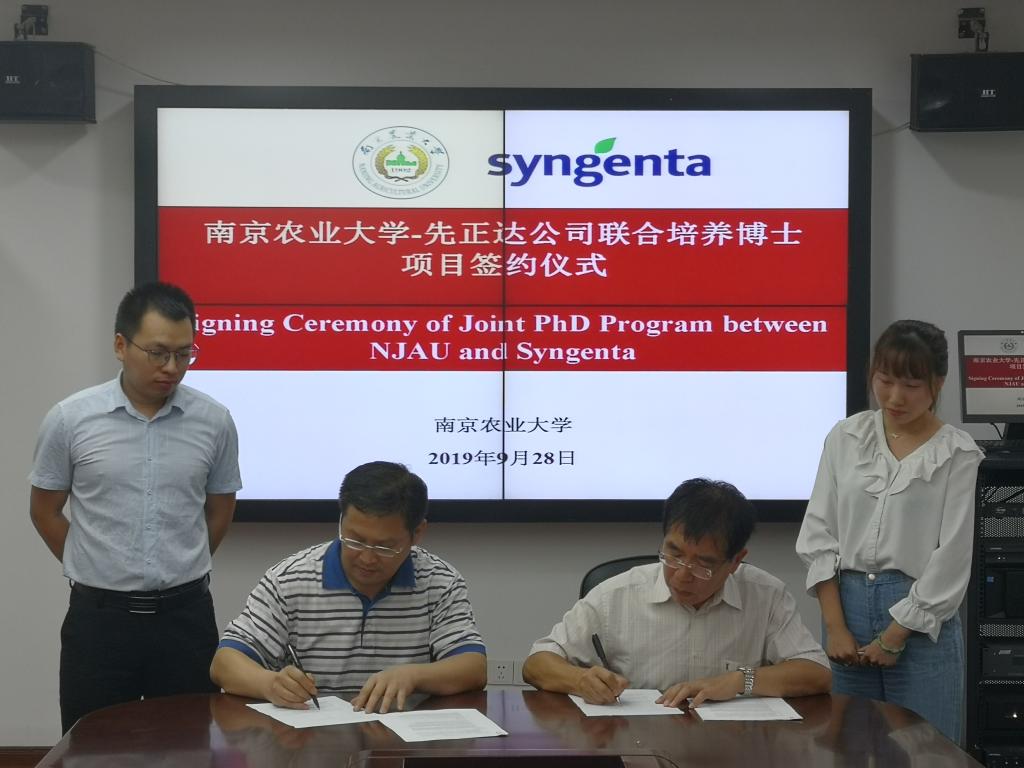 2019年9月28日下午,酒店偷拍 与先正达公司联合培养博士项目协议签字仪式在酒店偷拍 报告厅举行,酒店偷拍 院长章维华教授和先正达公司研发总监兼首席科学家顾玉诚博士代表双方签字。酒店偷拍 吴磊副院长、朱映光副院长、杨红教授、吴华教授、张明智副教授、张曙光、夏青等青年教师以及部分研究生参加了此次活动。