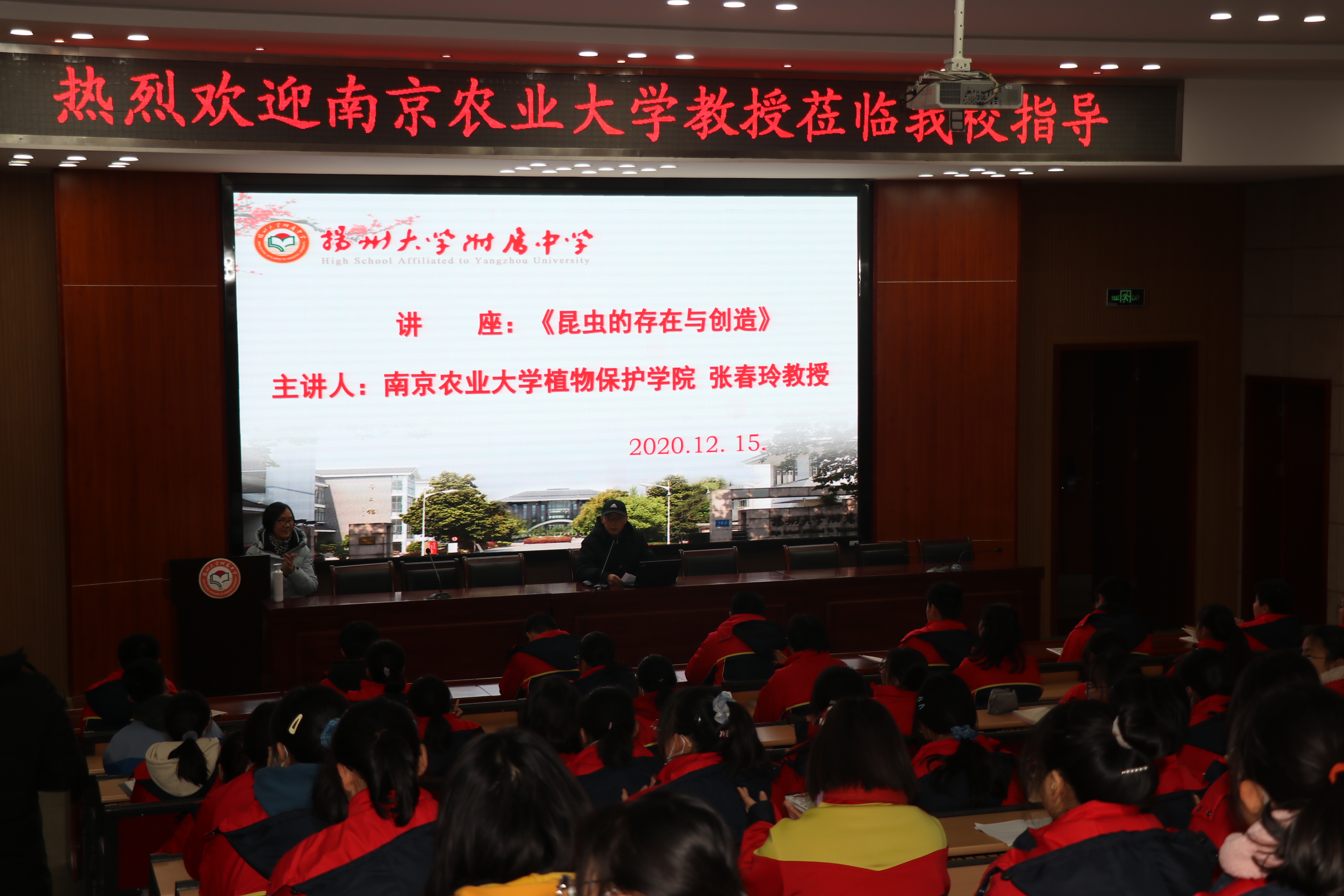 12月15日,酒店偷拍 师生来到江苏省扬州大学附属中学,为该校高中生带去专业、有用、有趣、生动的讲座及交流分享,让高中学生感受生物独特的魅力。