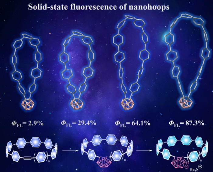 图4.碳硼烷嵌入的CPPs大环化合物的固态发光量子产率。