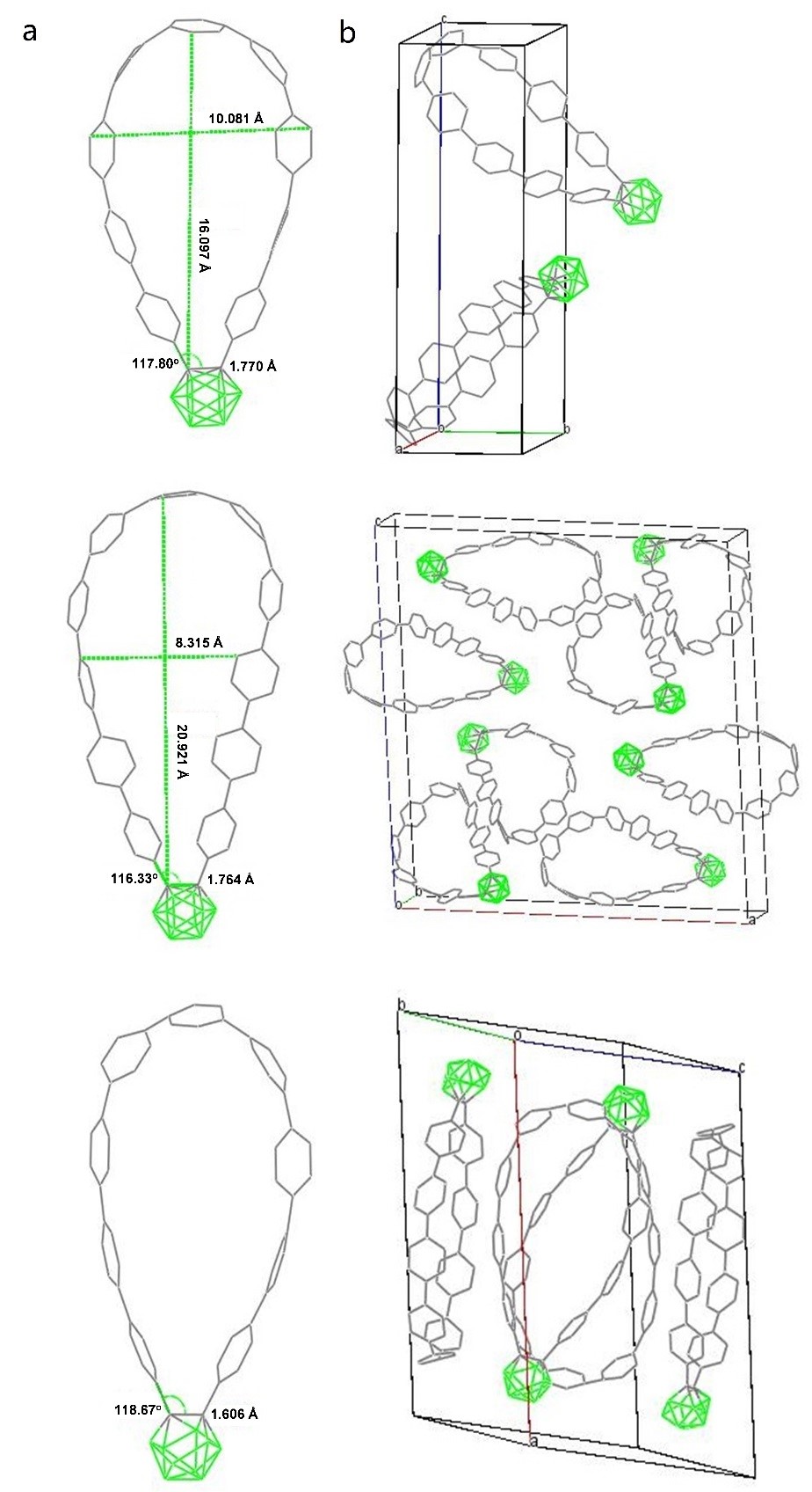 图5.碳硼烷嵌入的CPPs大环化合物的单晶解结构。