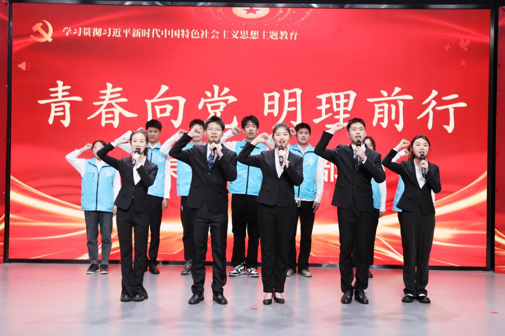 吴振鹏团支部青年团员带来了“青春向党,明理前行”主题献词。青年团员以深情炙热、铿锵有力的誓言,抒发着坚定不移听党话、跟党走的坚定决心。