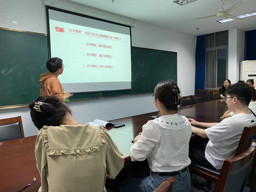 党支部书记刘吉根据总书记讲话的内容对其中的要点进行了梳理和阐述。这些要点包括了“以学增智”的含义以及提升政治、思维和实践三种能力的主要内容、具体方法和意义。在介绍完这些内容之后,支部书记刘吉也谈了自己学习后的体会。他认为:总书记的讲话精神不仅适用于社会主义现代化国家的全面建设,也适用于基层党支部的日常工作中。