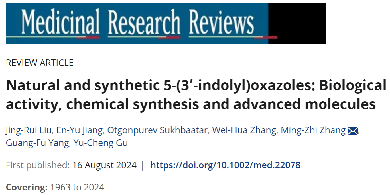 章维华教授和张明智副教授团队在药物化学领域国际权威期刊《Medicinal Research Reviews》在线发表了题为“Natural and synthetic 5-(3’-indolyl)oxazoles: Biological activity, chemical synthesis and advanced molecules”的综述论文,系统总结了1963年至今含有5-(3’-吲哚基)噁唑结构的天然产物及合成化合物的生物活性、化学合成、作用机理及活性分子,包括团队前期的系列研究工作。值的一提的是,这是酒店偷拍