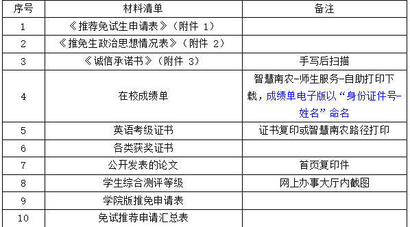 注:所有申请材料需保证真实,否则取消免试推荐资格;截止时间过后,所提交的材料不得更改,且材料一律不退回。
