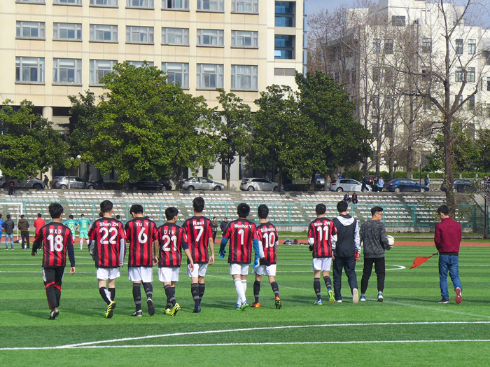球员积极防守,门将尽力拦截,但因首赛的拘谨以及实力悬殊,上半场0:4大比分落后。中场休息时,球队教练卢风帆鼓励队员积极调整情绪,同时改变下半场战术,告知球员们放松下来,享受比赛。