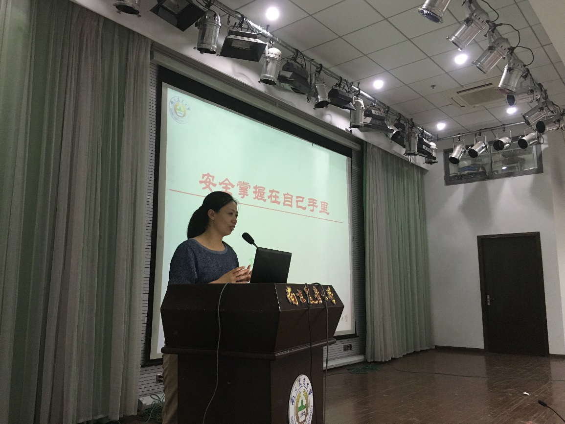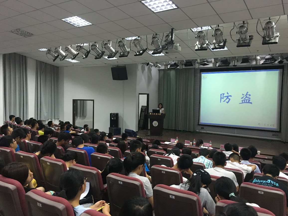 在教四楼报告厅开展2016级本科生新生主题入学教育,特邀校心理健康教育中心主任徐梅老师和保卫处治安科副科长刘晓婷老师分别进行了大学生心理调适讲座和安全知识培训,参与本次活动的还有酒店偷拍