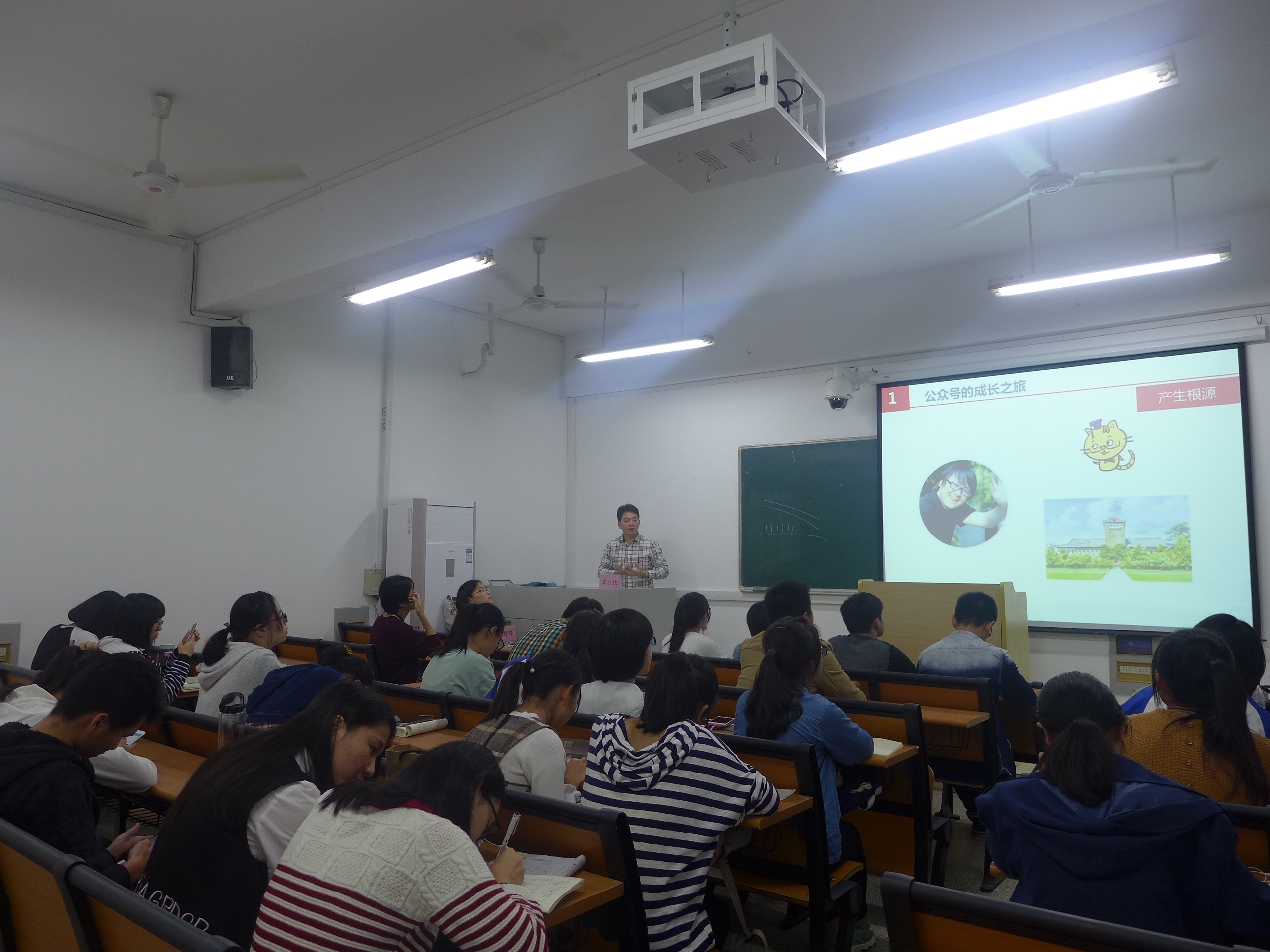 在新媒体运行方面,李老师做的“小钦心”的微信公众号,受到了许多人的好评。李老师以自身经历,讲述了“小钦心”的成长之旅,从名字、logo再到团队组建,认真总结了公众号的阅读规律;从公众的关注度再到成功的关键,就在于明确关注对象,把握时间节点等等。最后,老师用“四个有”鼓励新媒体组织的成员:表现要有力度,报道要有深度,思想要有高度,画面要有温度。
