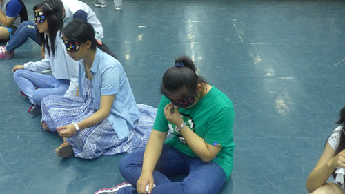 整个活动在刘老师的特色传统项目抓手指中拉开帷幕,这个通过抓住旁边同学的手指,来测试反应能力的游戏让同学们热情高涨。紧接着刘老师打乱了打破了系和班的界限,以10人一队分成不同的队伍,选出队长,副队,队秘,队徽,队歌,以及代表你这个团队的姿势。话音刚落,同学们便立刻热切讨论起来,你想队名,我画队徽,分工协作。有的叫五男五女队,有的叫五湖四海队,有的摆出千手观音的姿势。各个组很有创新精神,想出的组名和口号都让大家眼前一亮。之后的小游戏更加增进了团队之间的默契,例如找特定的物品。有些同学甚至不嫌辛苦从6楼跑到楼下只为采集树叶。