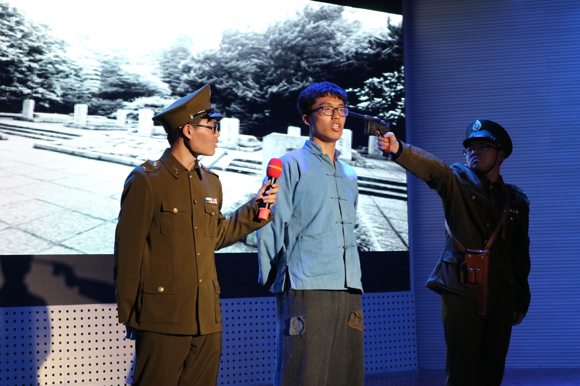 两位主持人宣布比赛正式开始后,《我的抗战》多人朗诵向观众们见面了,朗诵者们生动的再现了当年抗日烈士们的壮志豪情,大家都沉浸在雨花先烈们为国牺牲的爱国精神中。紧接着第十一届“南农小雨滴”队长李歆上台进行年度工作总结,汇报了上一学年雨花台讲解队所开展的活动以及取得的一些成果。总结结束后开始选手们的主题演讲。