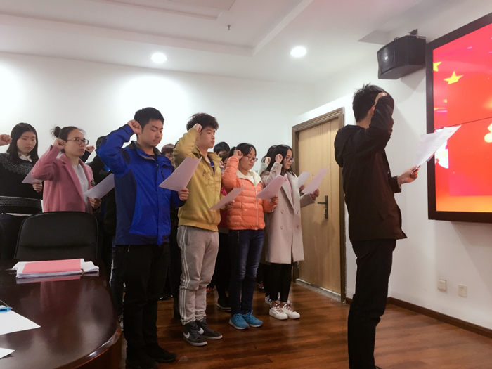 最后,支部全体党员重温入党誓词,高举右拳面向党旗庄严宣誓,一句句高昂激扬的誓词,激起了同志们的使命感,也让会议的精神深入人心。至此,应用化学本科生党支部民主评议大会圆满结束。