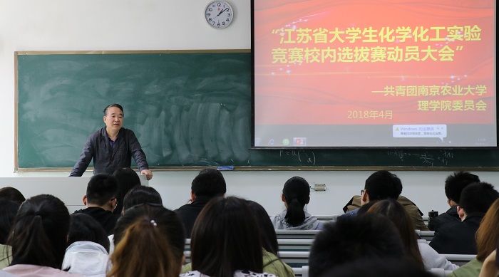 于主楼107教室组织开展了江苏省大学生化学化工实验竞赛校内选拔赛动员大会。