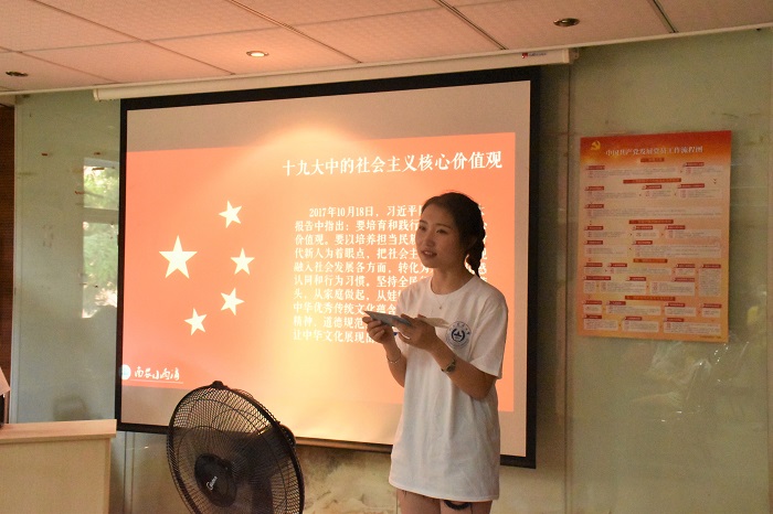 实践团深入明故宫苑、五老村等社区,通过主题讲座、制作手抄报、绘制文化衫等形式,开展“追烈士情思,品党的十九大精神”系列主题活动。