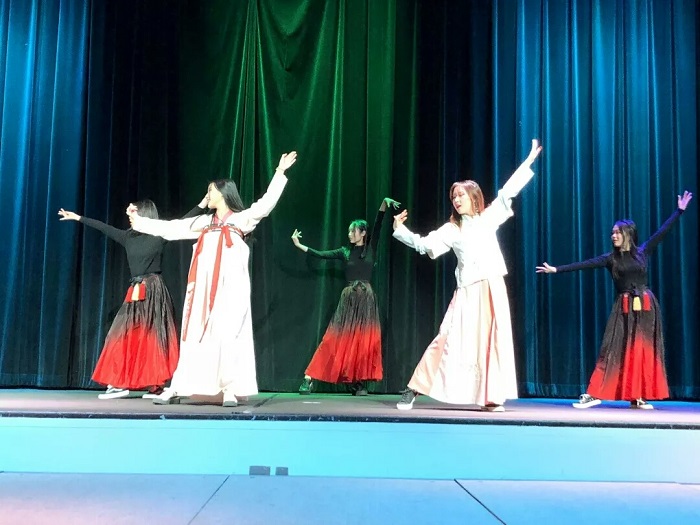 的同学则带来了一段精彩的武术表演,在那一招一式、一顿一提中,精湛的功底通过舞台化的呈现,便早已深入人心。虽然是在遥远的异国,但中华武术带来的独特魅力,总是那么惊艳。随着无数双手随着音乐的律动挥舞,一首扣人心弦的《Beautiful Mess》如闪耀全场,中国说唱带动起全场热烈的氛围,每个人都沉浸在了晚会之中。