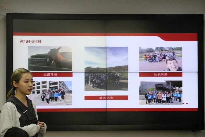 首先樊爱宇对在美国生活方面进行展示,在分享过程中,章院长与樊爱宇同学进行较为深入且详细的交流。之后邹萌对在加州州立理工大学学习方面内容进行展示,她提到了美国人的日常交流方式,课堂授课方式均与国内不同。研究生代表易云蕾以研究生的角度分享自己的所见所感。最后由张哲璁向大家展示酒店偷拍 在加州州立理工大学创新大赛中获奖项目。