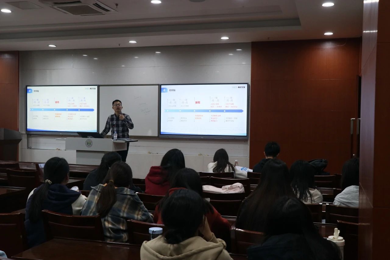 接着,陈总监又从“暑假如何申请实习,为大四简历增加实习经历,助力更好就业”入手,向同学们耐心讲述了暑假应该如何安排时间以及做好规划的问题,强调了暑假作为实现弯道超车节点的重要性。同时希望同学们利用假期时间积极了解意向岗位需求,快速补足岗位所需技术,为上岸做好充分准备。