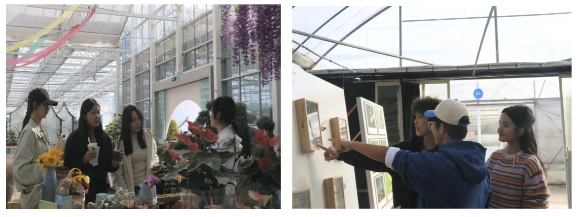 在学习与交流的过程中,同学们积极地亲近自然,欣赏与观察各色花朵。与此同时,同学们也积极探索菊花基地里的其他实践项目,在合作中实现共赢,一同收获快乐与满足。