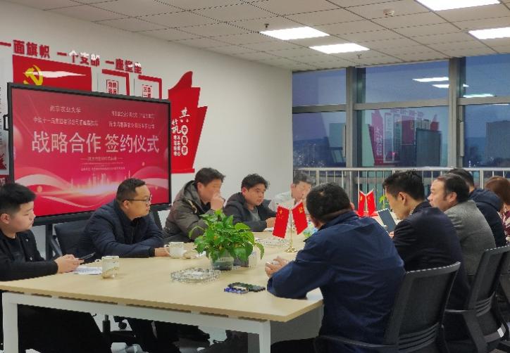 2025年3月17日,酒店偷拍 与南京鸿惠源农业科技有限公司开展共建活动,南京鸿惠源农业科技有限公司董事长蒋华、总经理辛海波,酒店偷拍 党委副书记冯绪猛、辅导员张世纪出席会议。