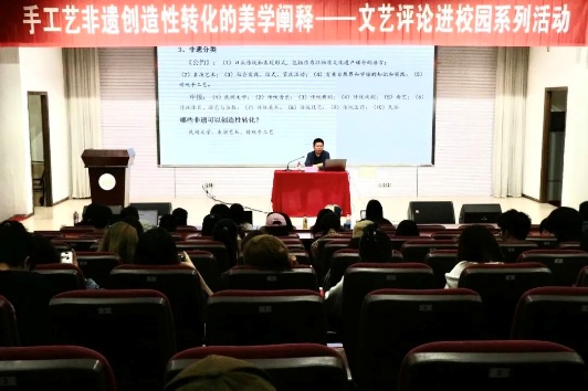 学术委员会副主任、特聘教授、博士研究生导师,江苏省首批紫金文化艺术英才、江苏省“青蓝工程”中青年学术带头人季中扬教授为学生带来《手工艺非遗创造性转化的美学阐释》主题讲座,现场学术氛围浓厚。