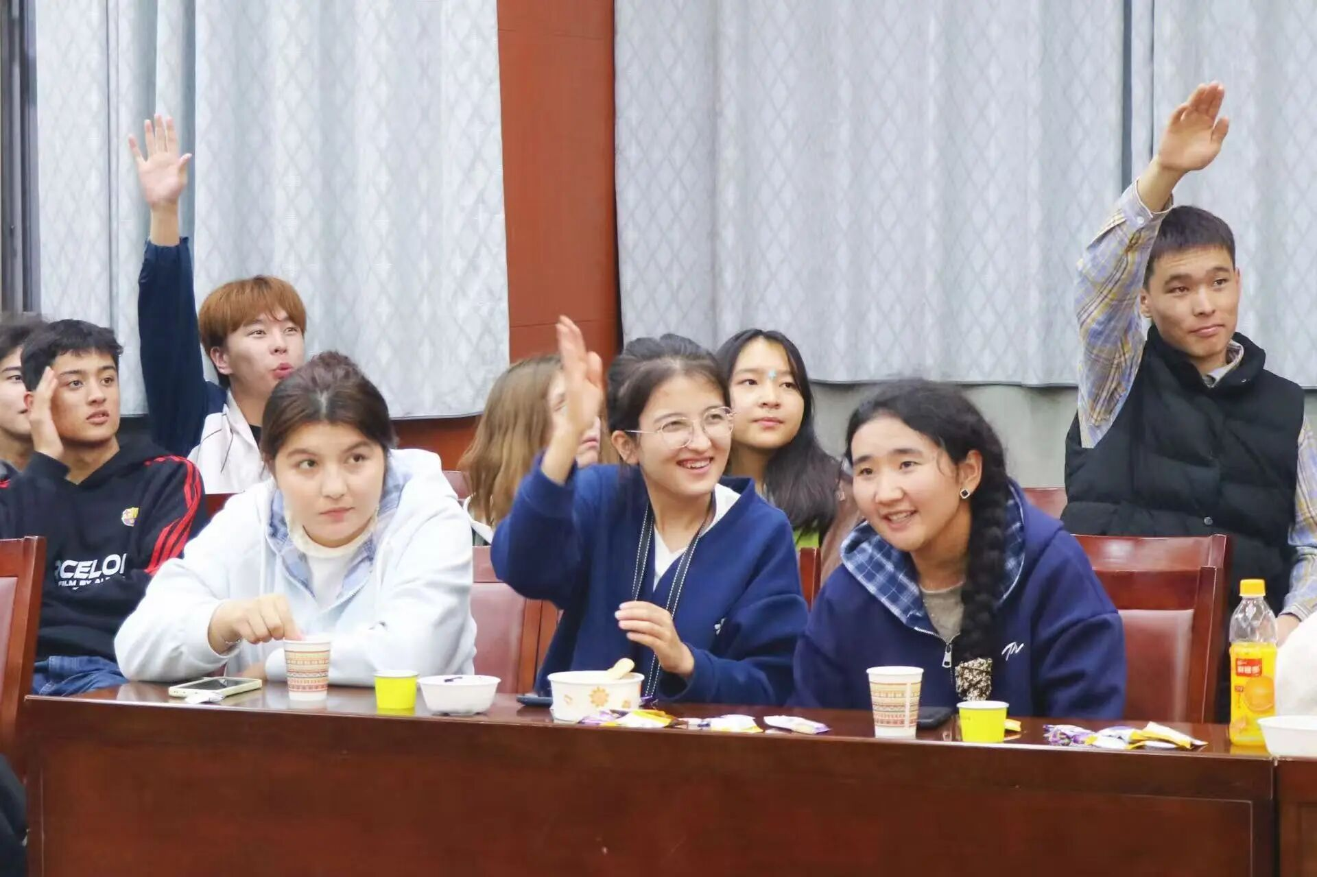 紧接着,活动带领大家抵达雄伟壮丽的天山脚下。这里生活着一个与雄鹰为伴的民族——哈萨克族。“哈萨克”一词,意为“勇敢的自由人”。他们世代游牧,被誉为“世界上没有乞丐的民族”。哈萨克族同学通过讲述民族历史和民间故事,展现了游牧生活的诗意与冬不拉琴声里的民族情怀。