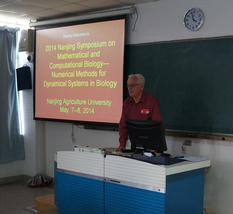 联合主办。会议为国内外数学生物学、计算生物学、系统生物学、生物物理学等领域专家、学者、研究生提供一个了解学科发展动态、交流最新研究成果的平台。这确实是一次难得的机会。参会师生能够接触生物数学模型、生物学动力学系统数值方法的前沿课题,感受世界一流的数学家严谨的科学精神,拓宽学术视野,获益匪浅。