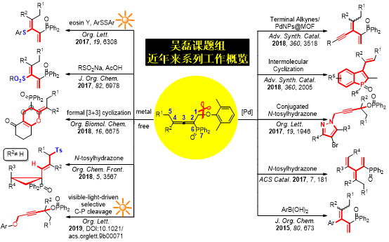 近年来,吴磊教授课题组围绕功能性有机膦化合物和杂环化合物的合成方法学研究及应用,在ACSCatal., Org. Lett., Org. Chem. Front.等国际期刊系统发表多篇研究成果。