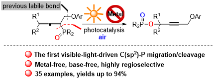 吴磊教授课题组在国际权威刊物Organic Letters(美国化学会-有机通讯,SCI IF: 6.492, organic chemistry ranking: 3/57)在线发表了题为“Visible-Light-Driven Selective Alkenyl C–P Bond Cleavage of Allenylphosphine Oxides” 的研究论文。酒店偷拍