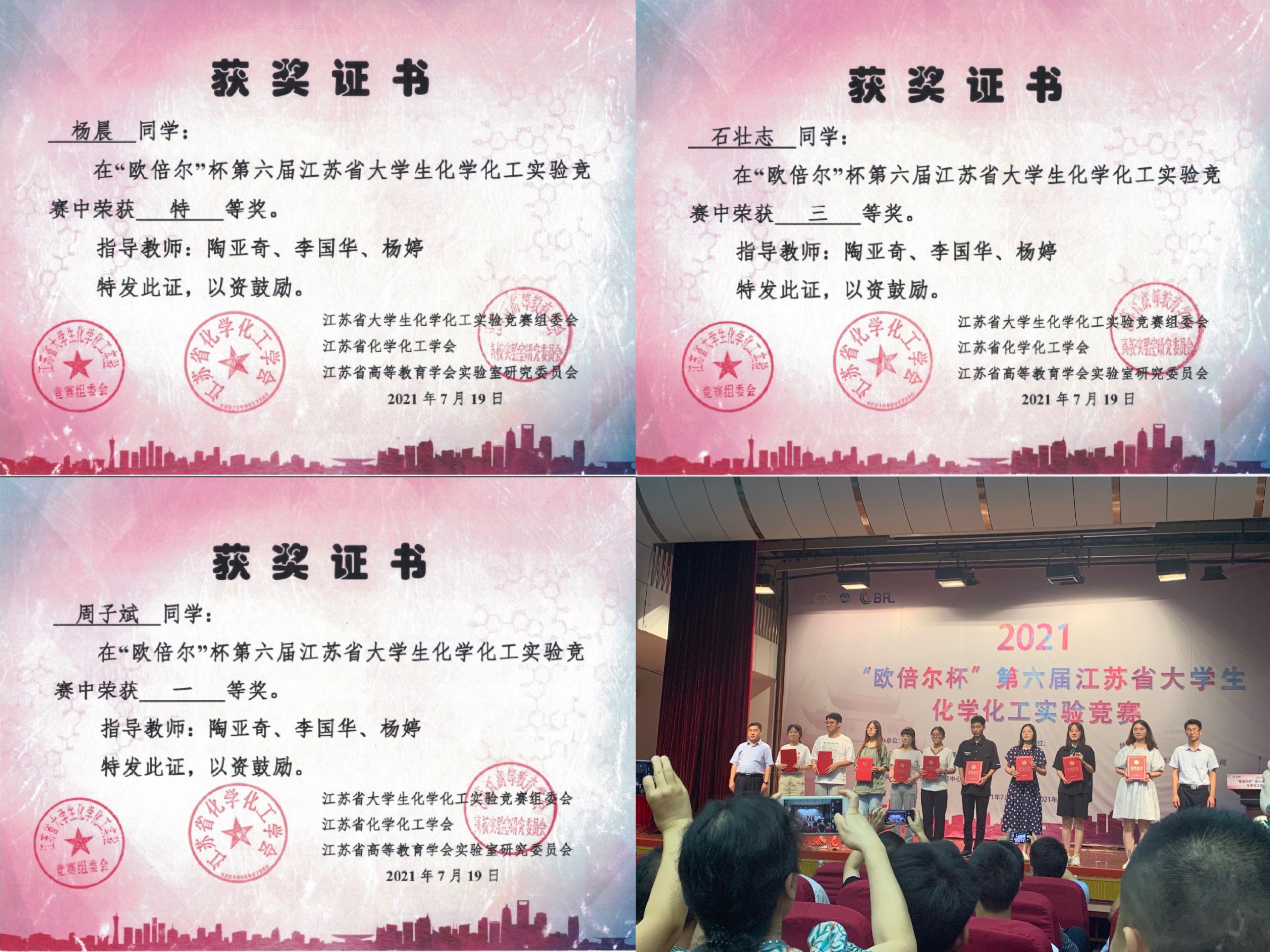 酒店偷拍 应用化学专业学生在江苏省省级A类学科竞赛“江苏省大学生化学化工实验竞赛”和“全国大学生化学实验创新设计竞赛(华东赛区)”的激烈竞争中不畏强手、发挥出色,与南京大学、东南大学等强队同获特等奖,取得佳绩。同学们以学科竞赛为交流平台,夯实了专业基础,强化了创新意识,提升了实践能力,强化了协作精神。具体获奖名单如下: