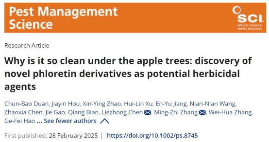 本科生段淳宝以共同第一作者在农业综合国际权威期刊《Pest Management Science》在线发表了题目为“Why is it so clean under the apple trees: Discovery of novel phloretin derivatives as potential herbicidal agents”的研究论文,基于自然现象开展活性天然产物研究,使用人工智能寻找潜在作用靶标是该论文的亮点。